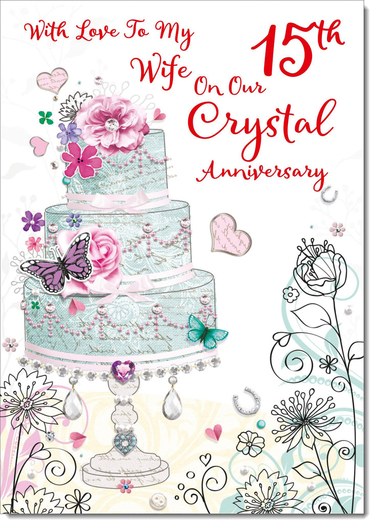 Wife Crystal 15th Wedding Anniversary Card Wedding Cake
