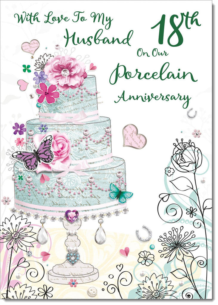 Husband Porcelain 18th Wedding Anniversary Card Wedding Cake