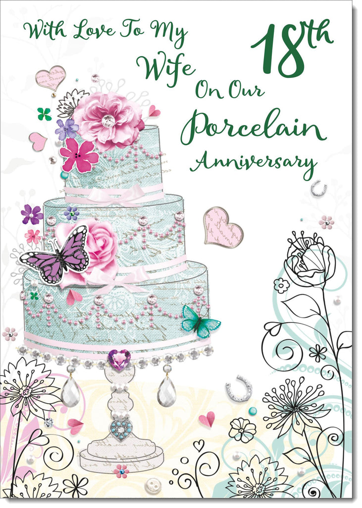 Wife Porcelain 18th Wedding Anniversary Card Wedding Cake