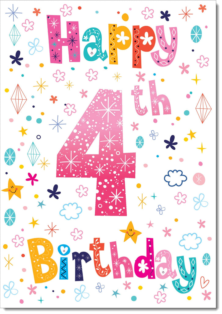 4th Birthday Card Age 4 for Girl Pretty Font