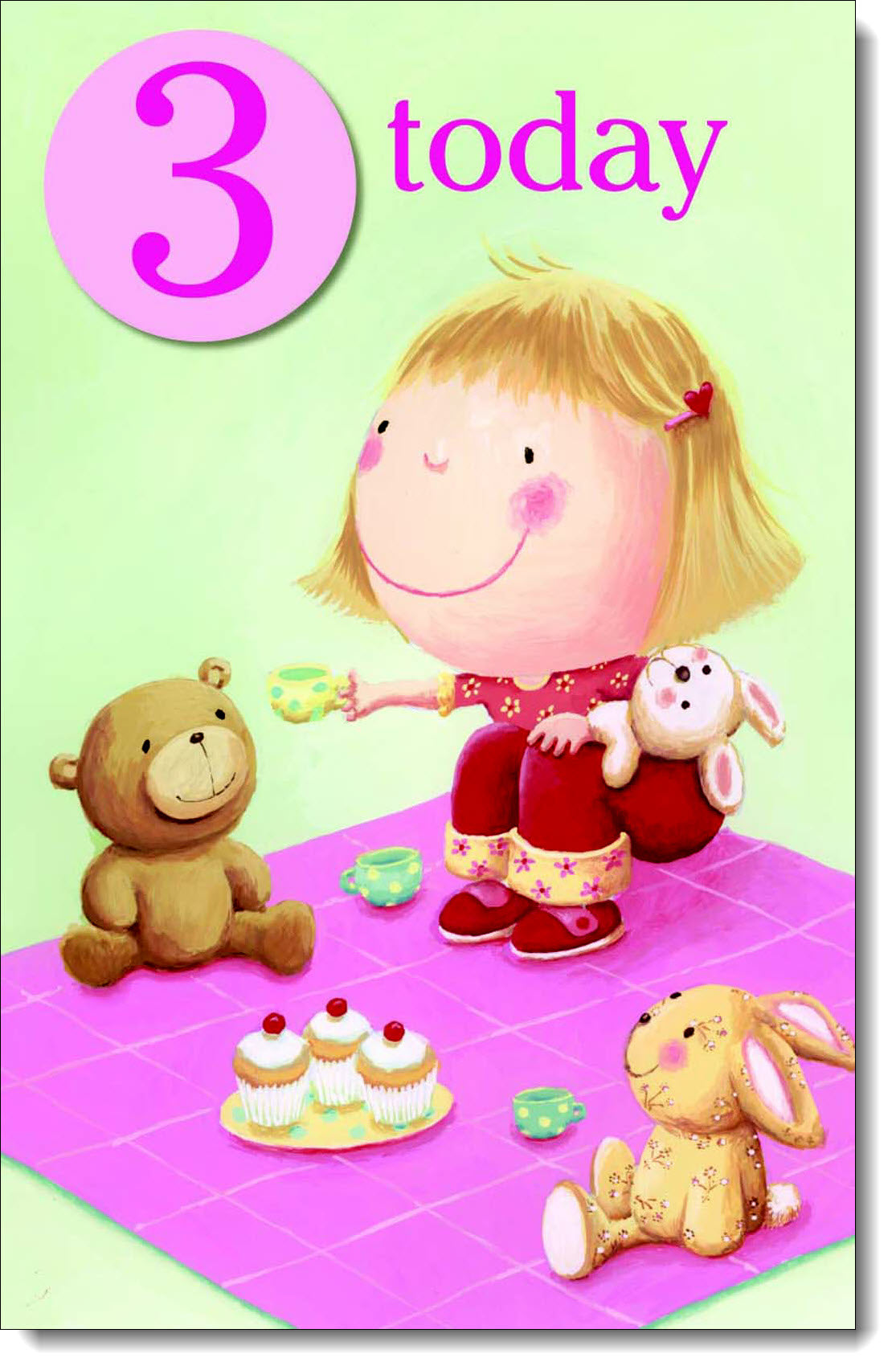 3rd Birthday Card Age 3 for Girl Teddy Bear Picnic