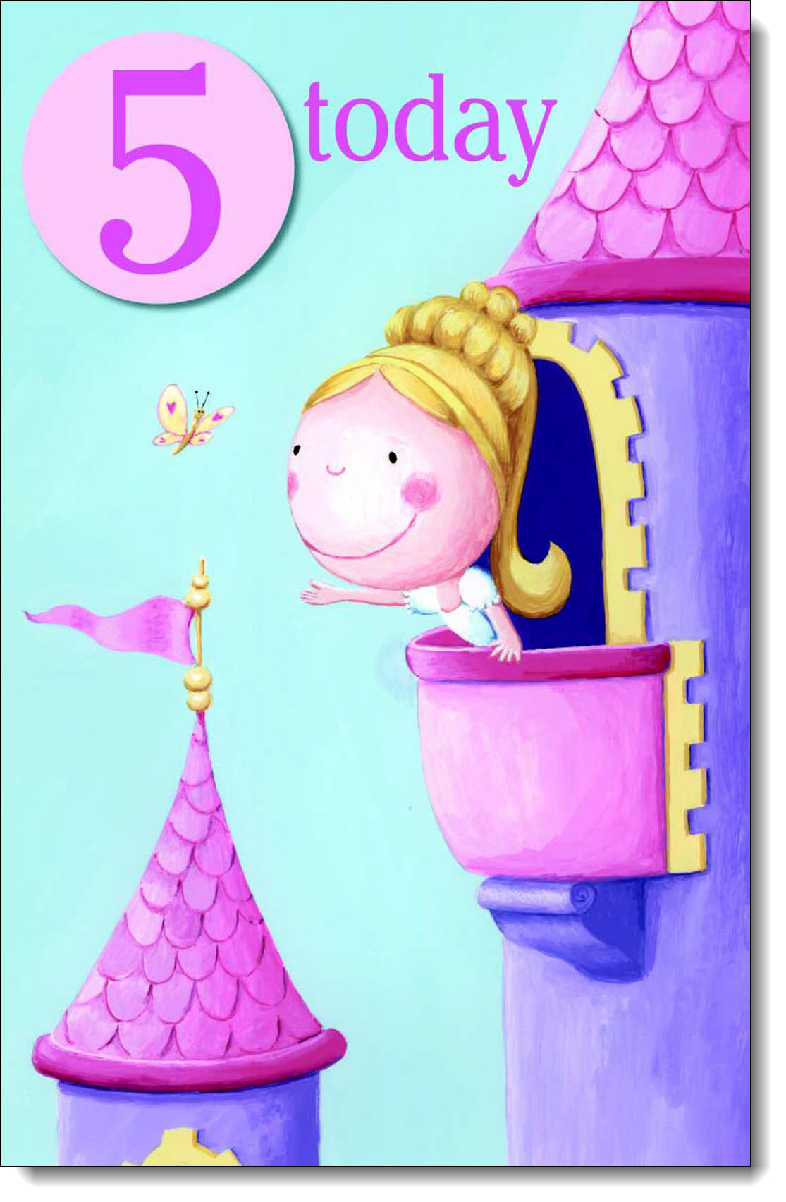 5th Birthday Card Age 5 for Girl Princess in Castle