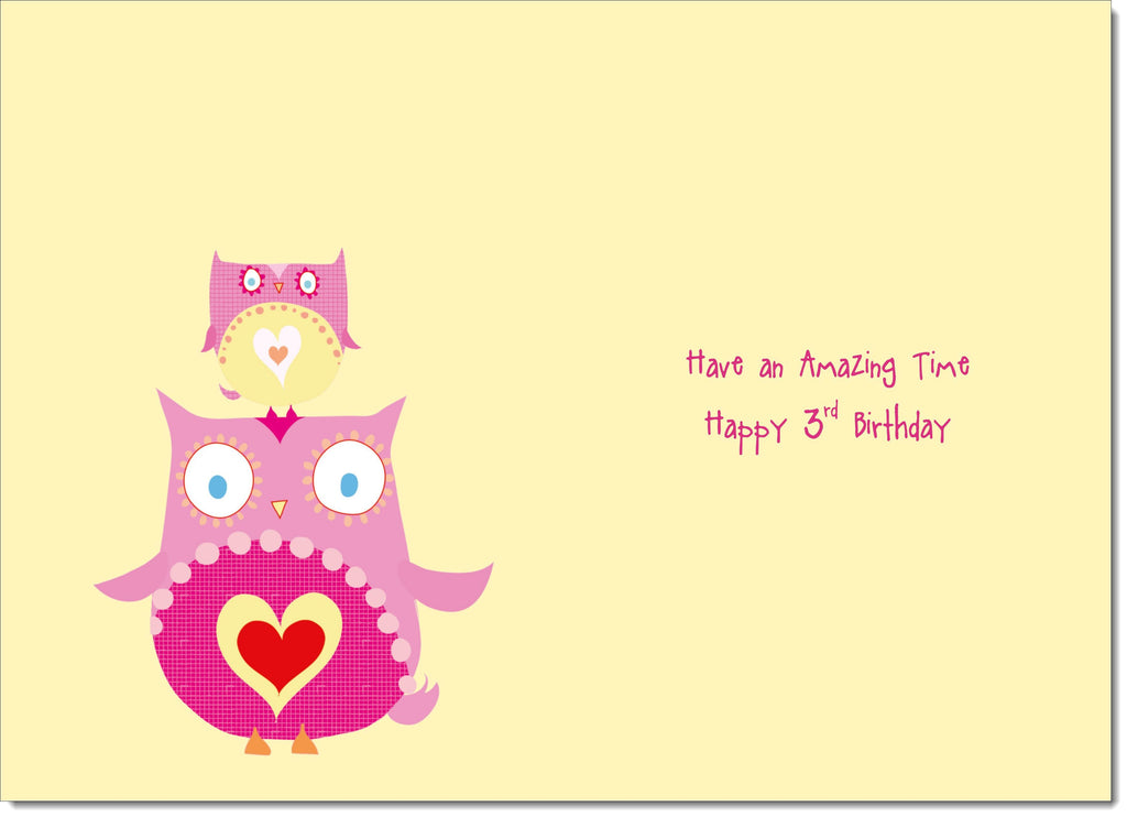 3rd Birthday Card Age 3 for Girl Cute Owl