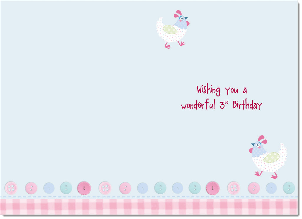 3rd Birthday Card Age 3 for Girl Colourful Chicken