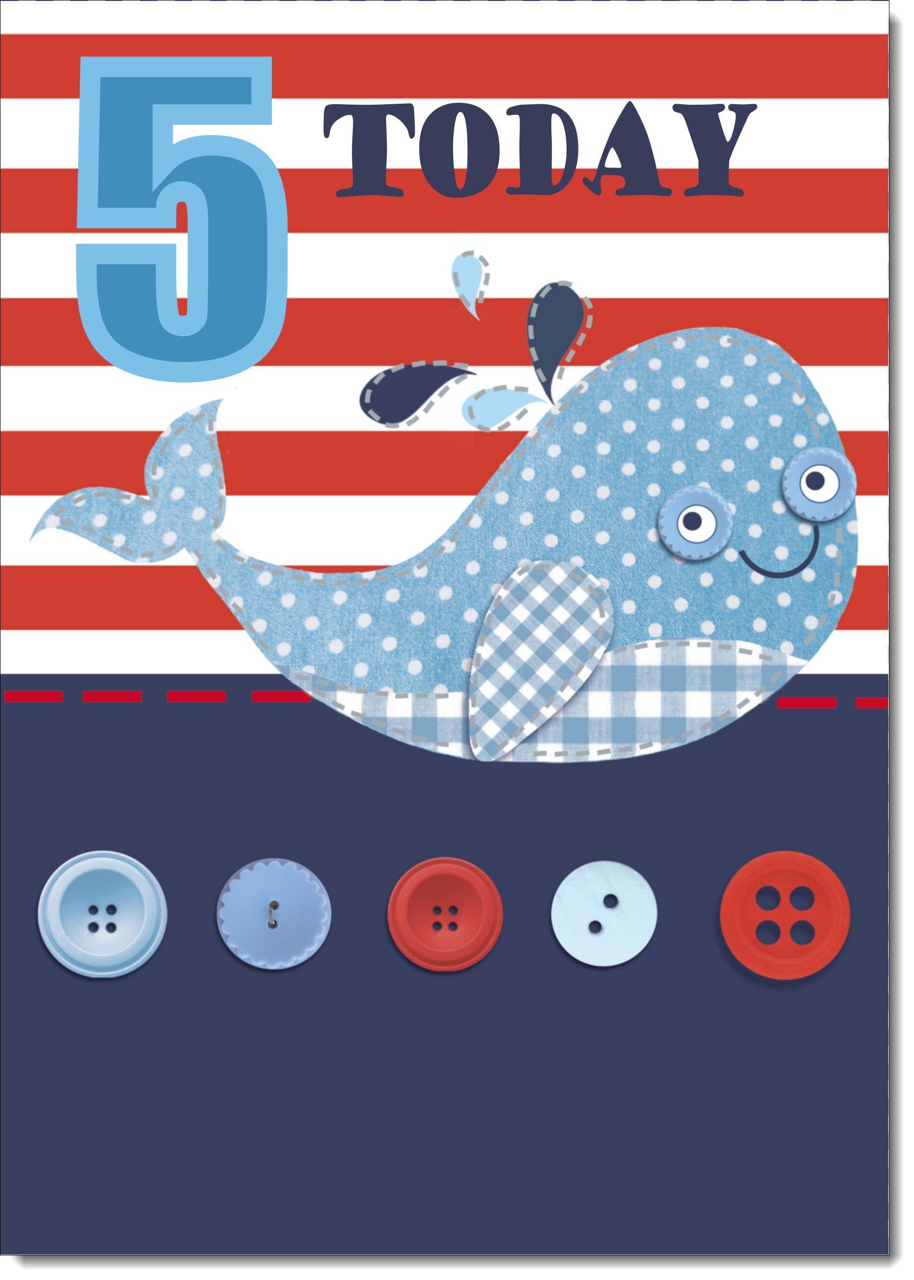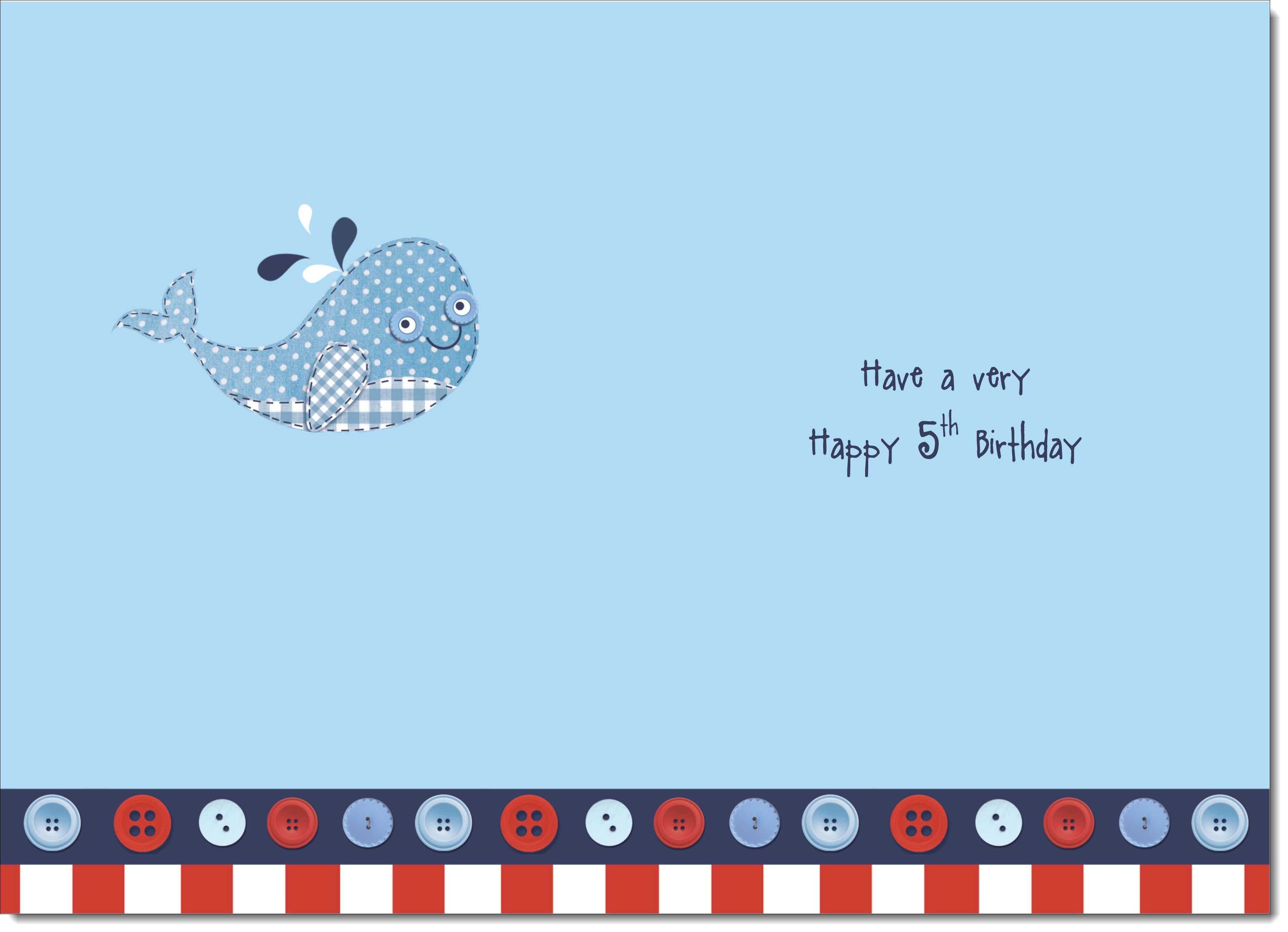 5th Birthday Card Age 5 for Boy Cartoon Whale