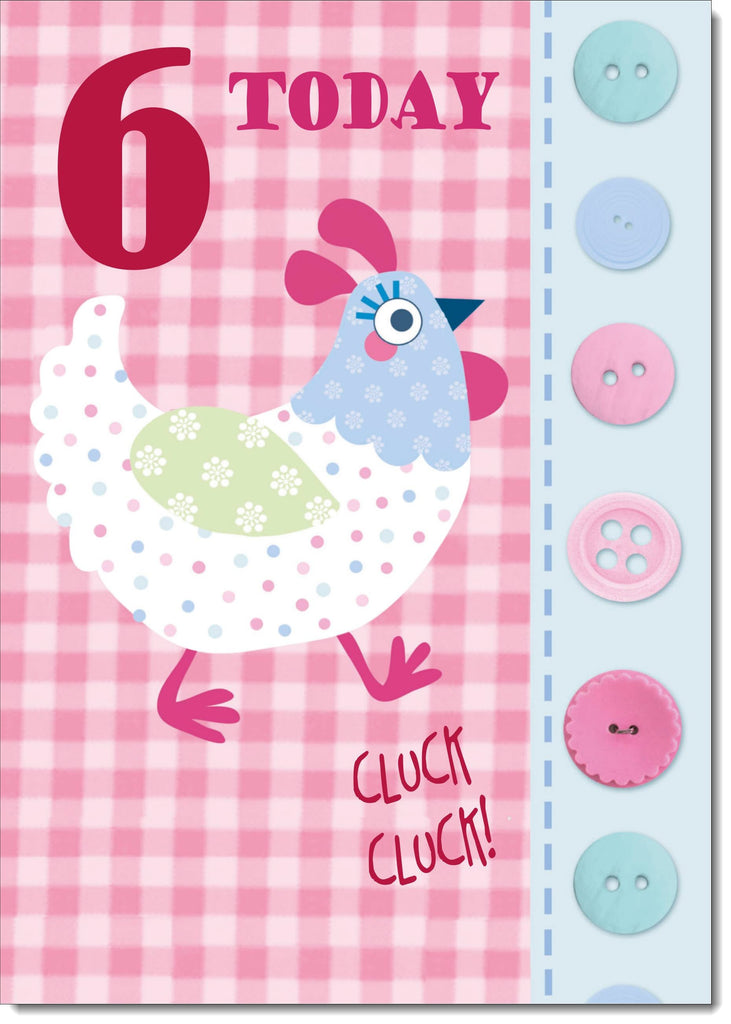 6th Birthday Card Age 6 for Girl Colourful Chicken