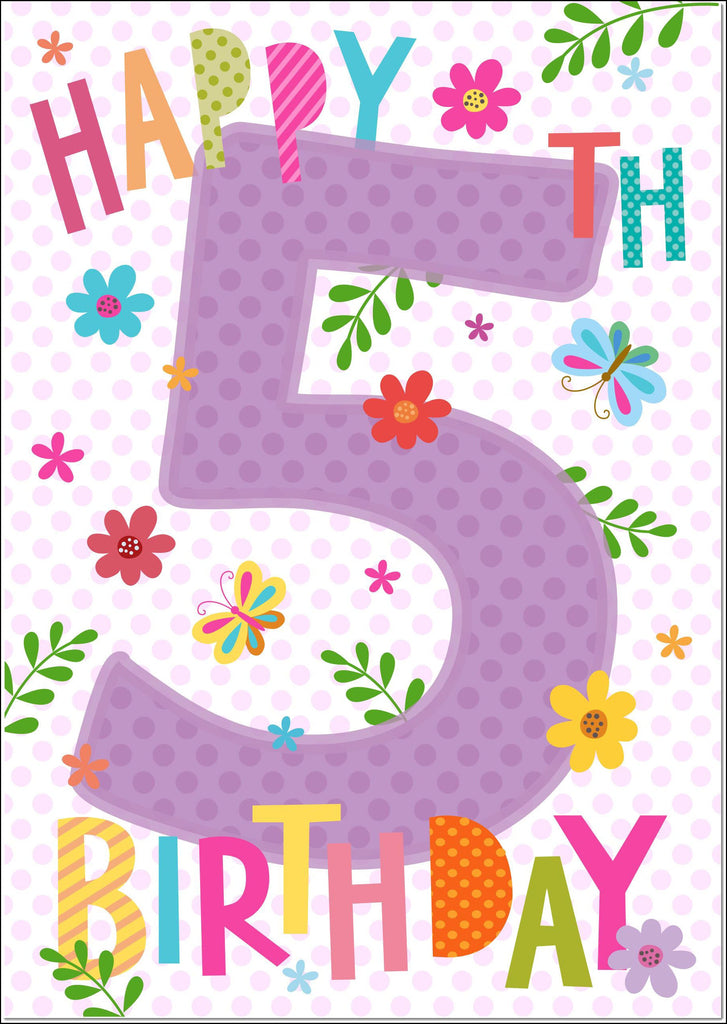 5th Birthday Card Age 5 for Girl Floral Numbers