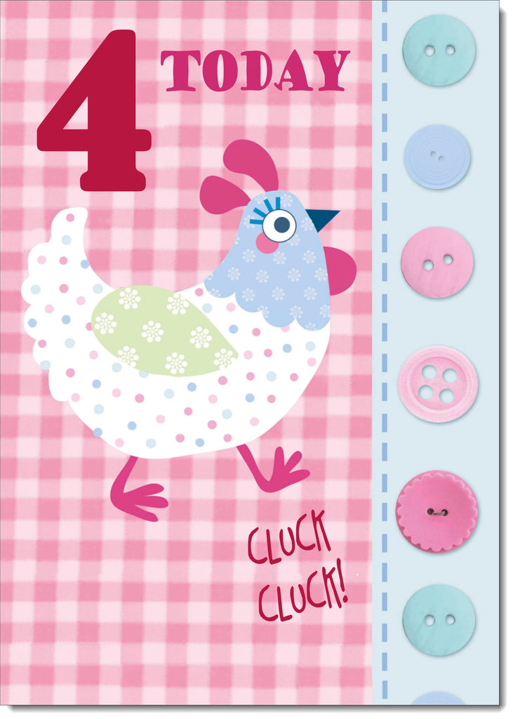4th Birthday Card Age 4 for Girl Colourful Chicken