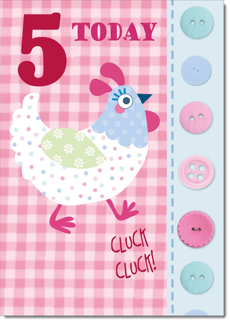 5th Birthday Card Age 5 for Girl Colourful Chicken