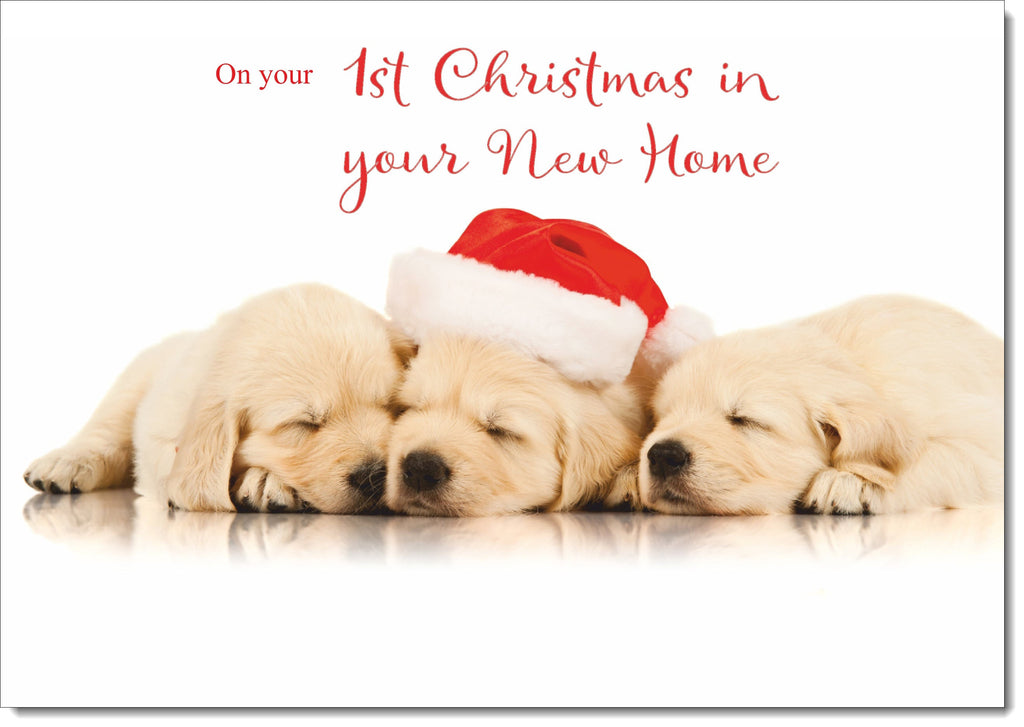 1st Christmas in New Home Card Christmas Golden Retriever Puppies