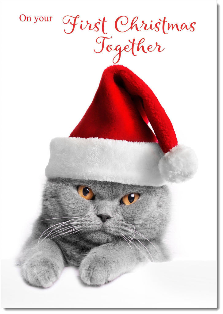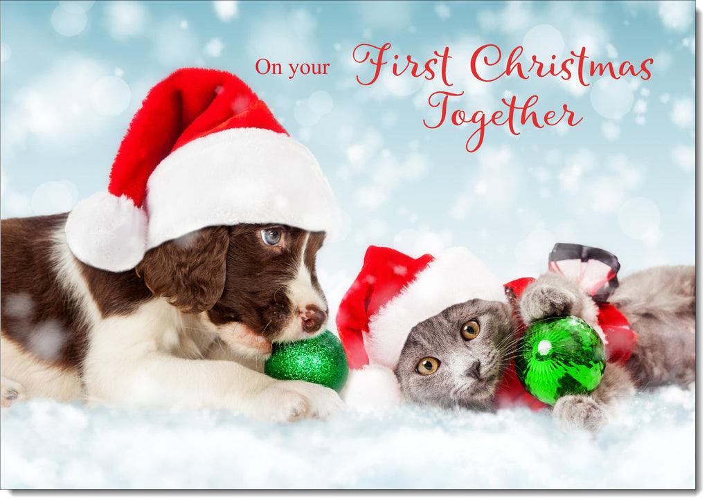 1st Together Christmas Card Puppy and Kitten with Santa Hats