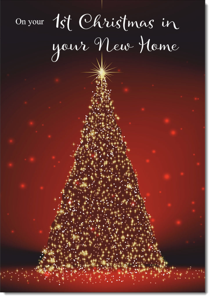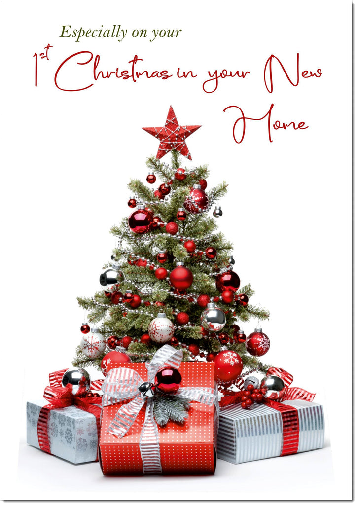 1st Christmas in New Home Card Christmas Tree and Parcels