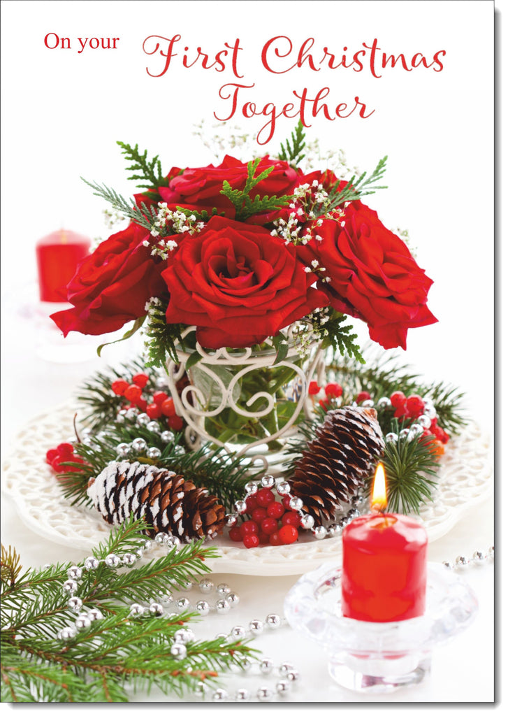 1st Together Christmas Card Red Roses Christmas Arrangement