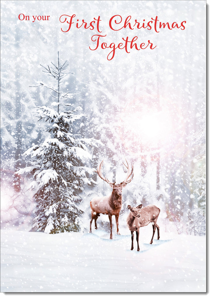 1st Together Christmas Card Stag and Doe in Snowy Forest