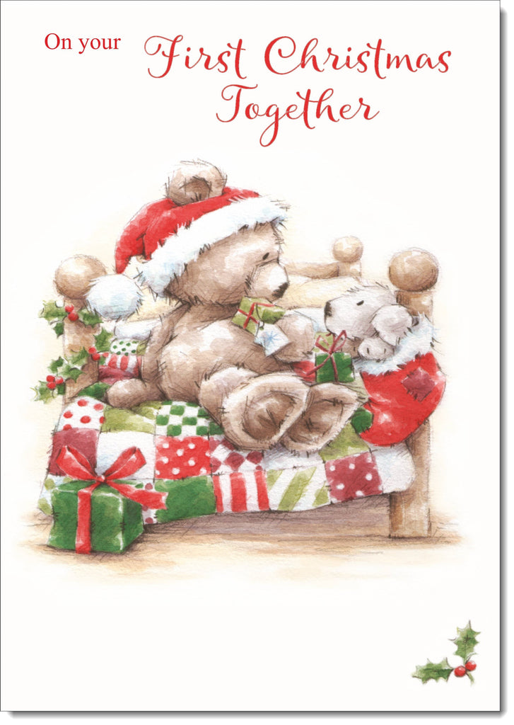 1st Together Christmas Card Funny Santa Bear and Broken Boot