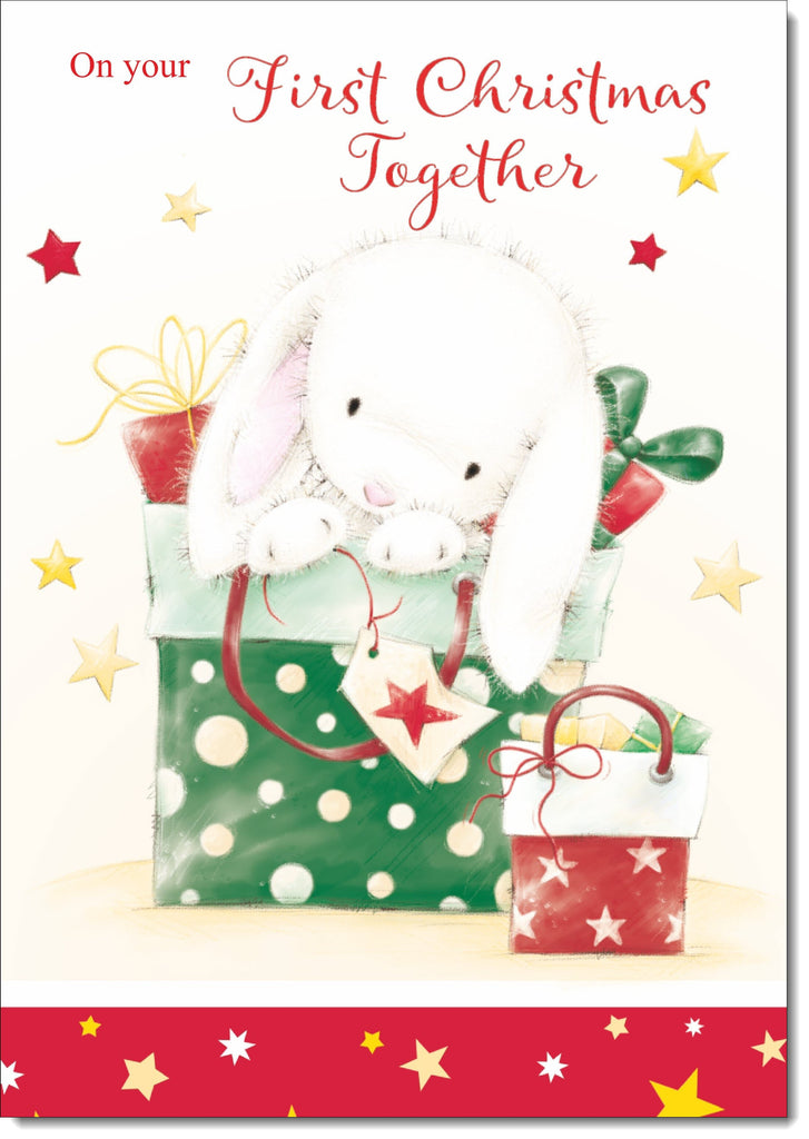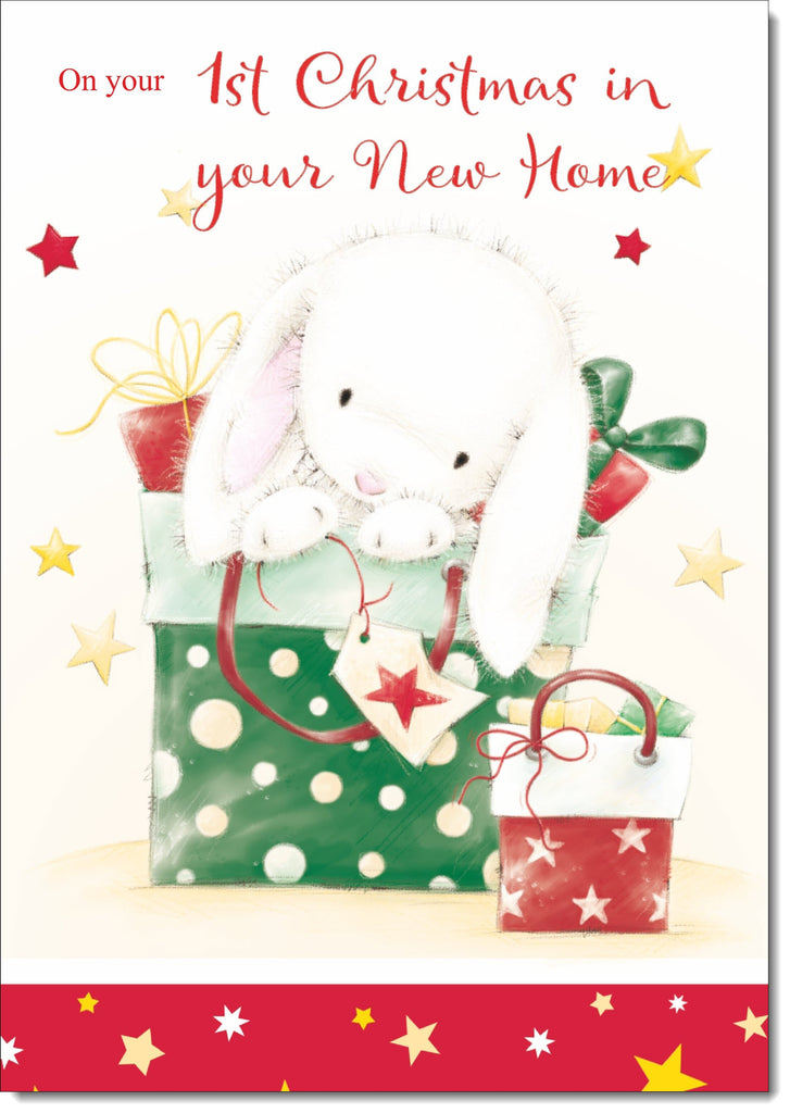 1st Christmas in New Home Card Cute Rabbit with Parcels