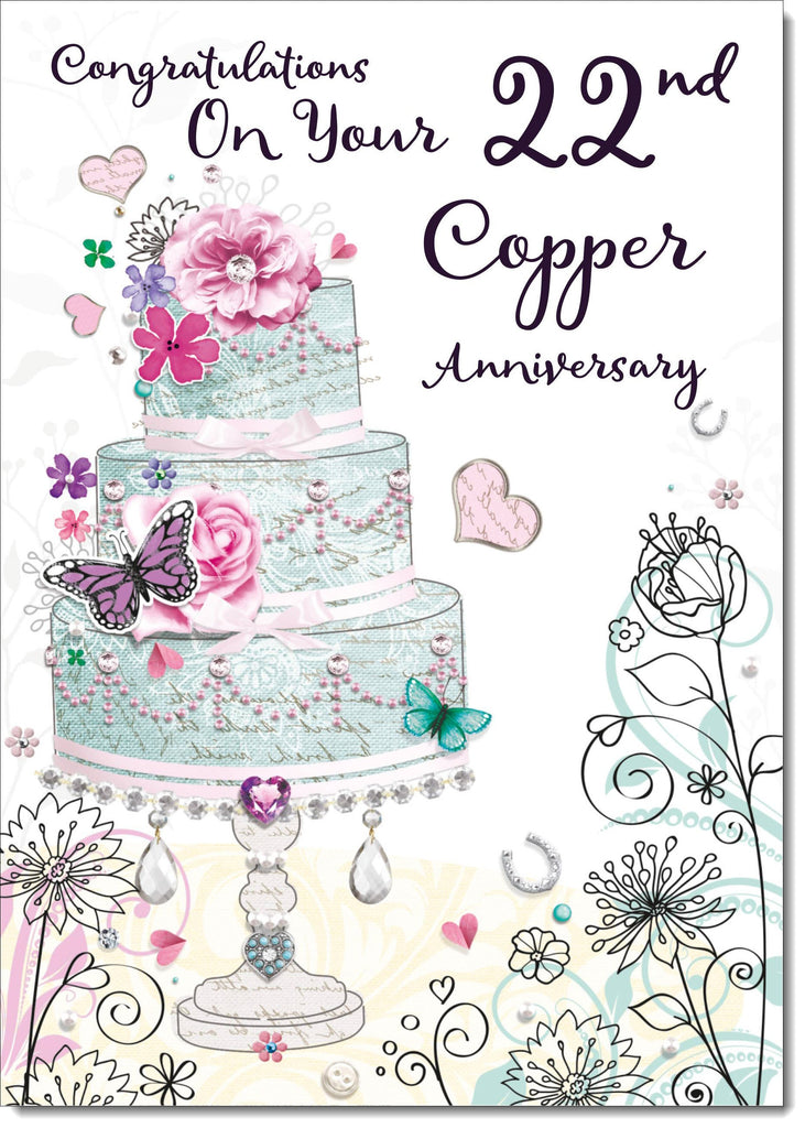 Wife Copper 22nd Wedding Anniversary Card Wedding Cake