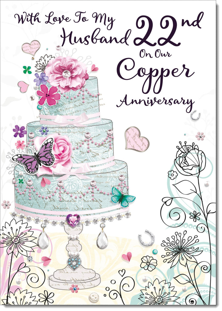 Husband Copper 22nd Wedding Anniversary Card Wedding Cake