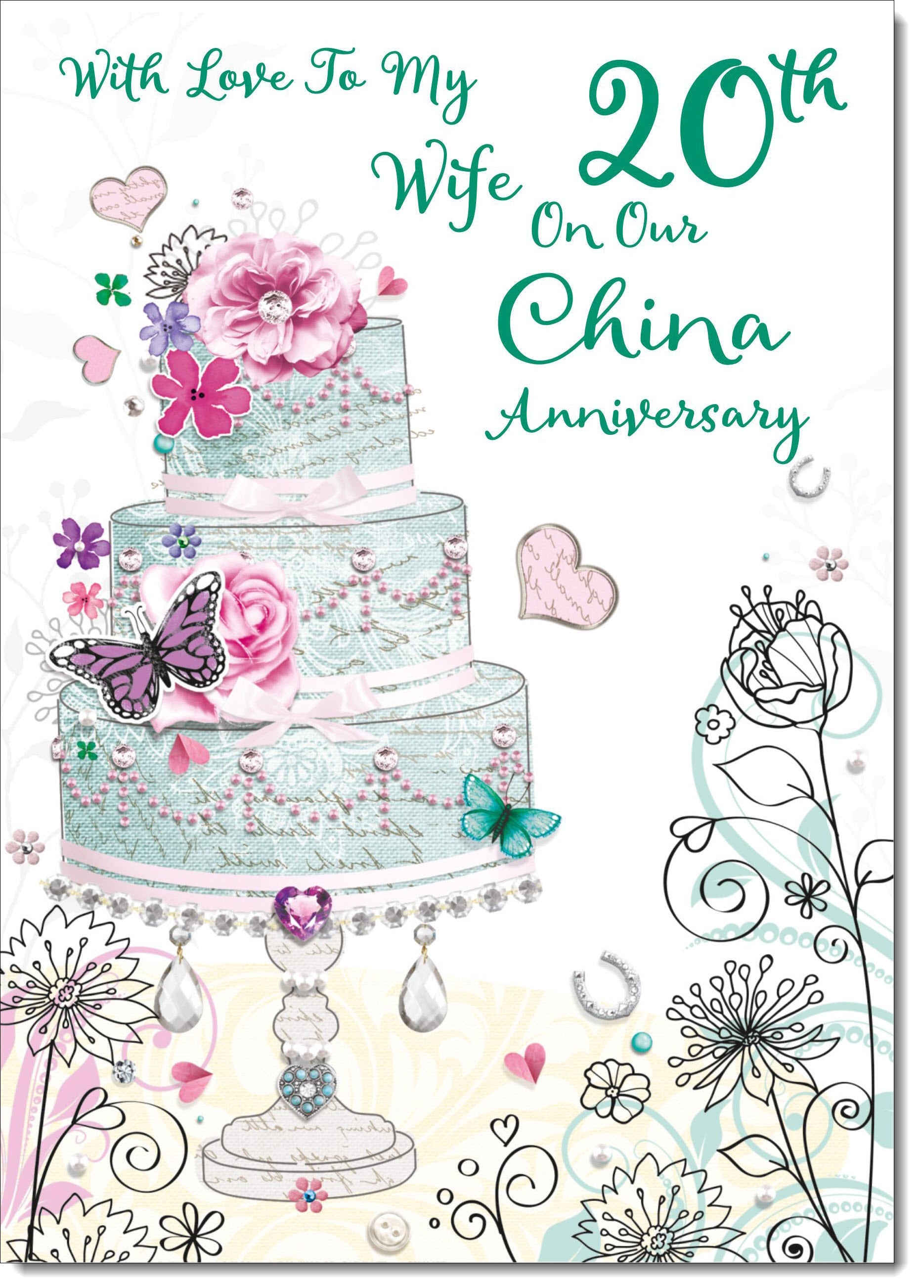 Wife China 20th Wedding Anniversary Card Wedding Cake