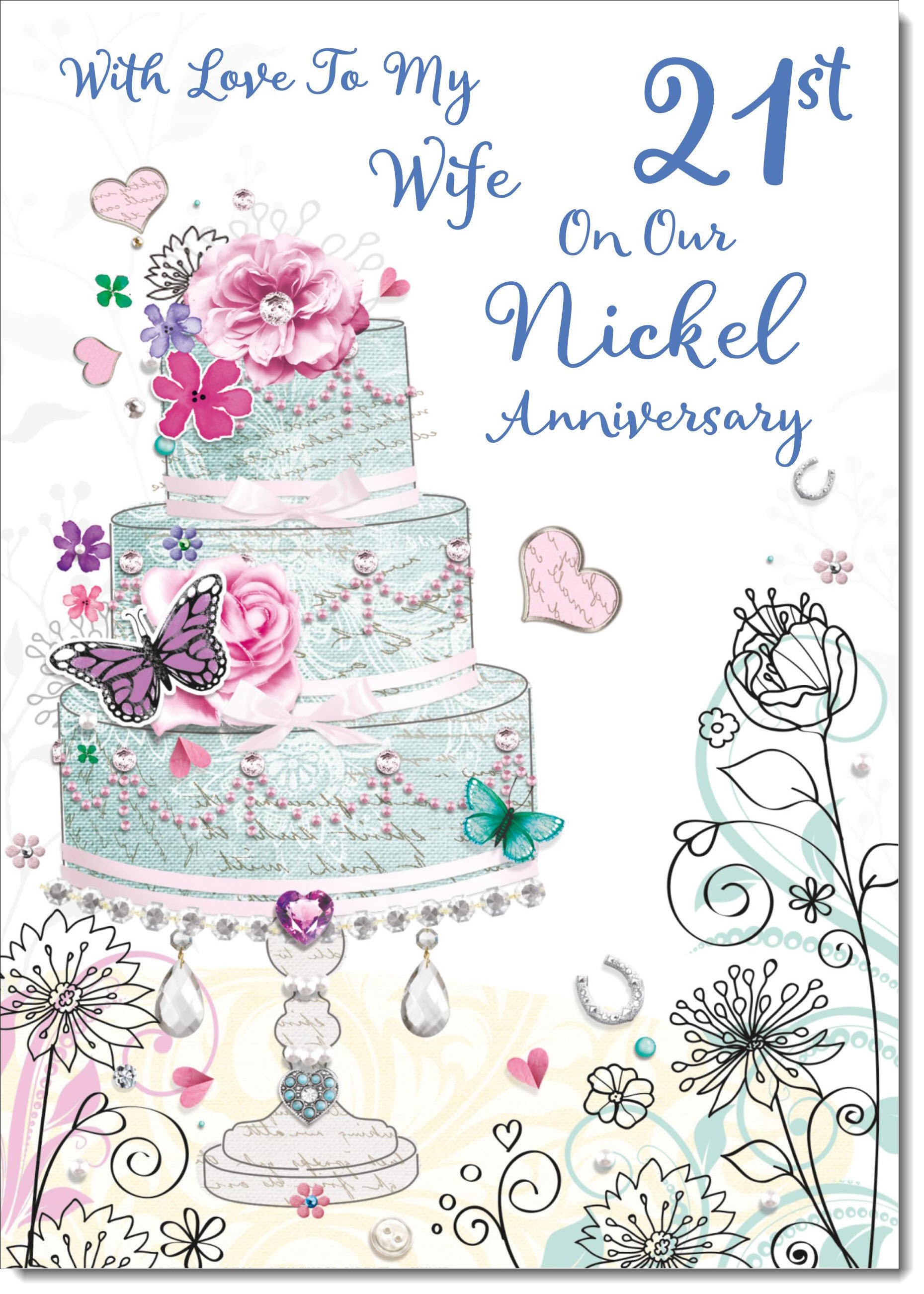 Wife Nickel 21st Wedding Anniversary Card Wedding Cake