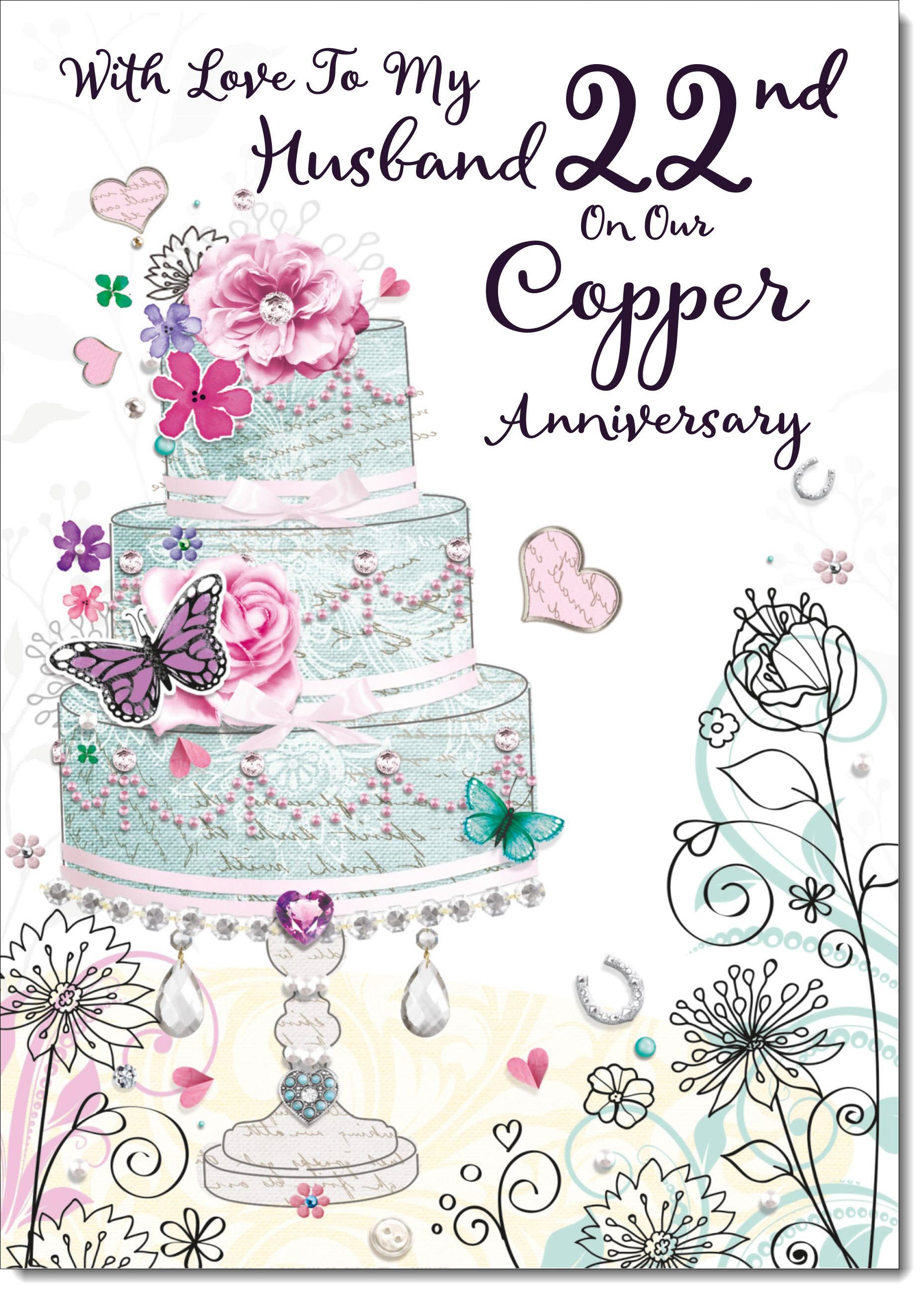 Husband Copper 22nd Wedding Anniversary Card Wedding Cake