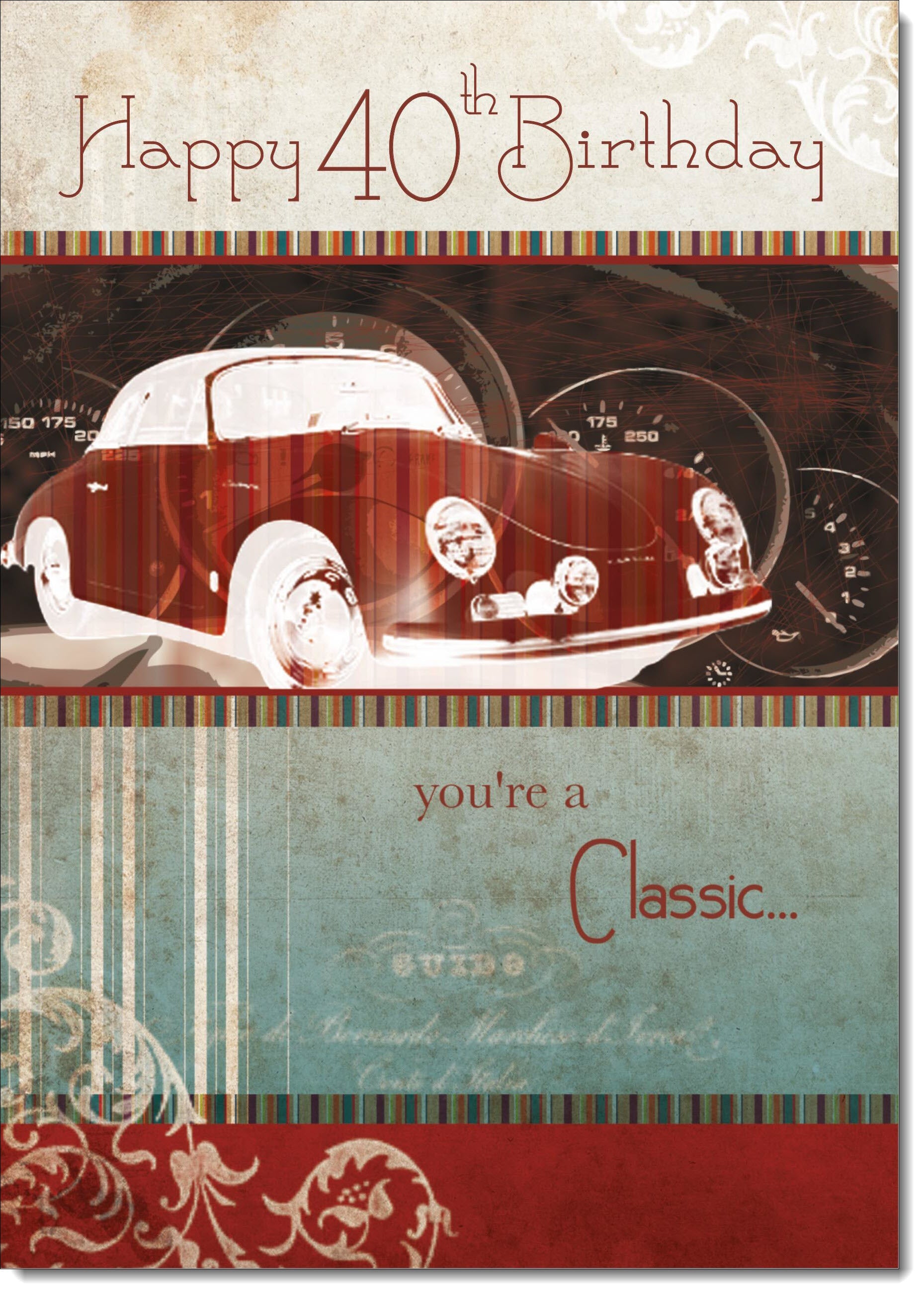 40th Birthday Card Age 40 for Him Vintage Car