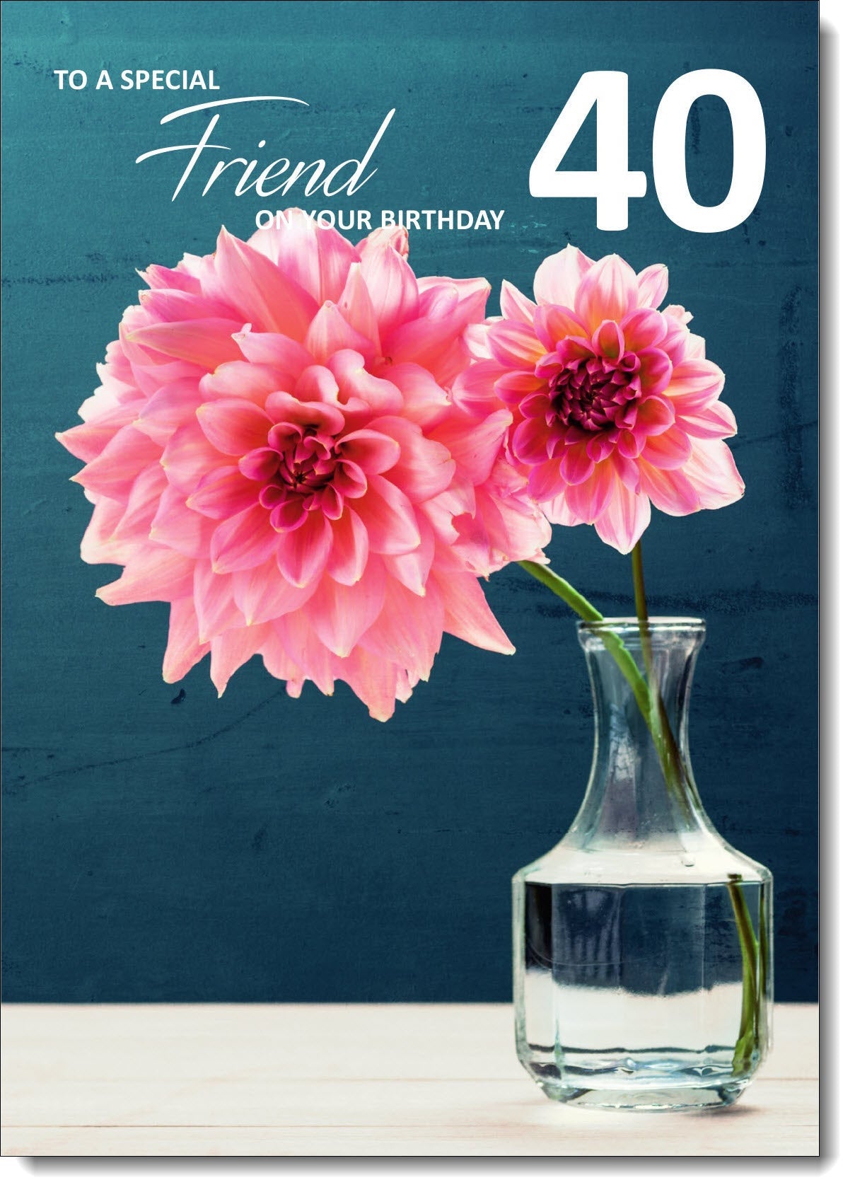 Friend 40th Birthday Card Age 40 Large Pink Flowers