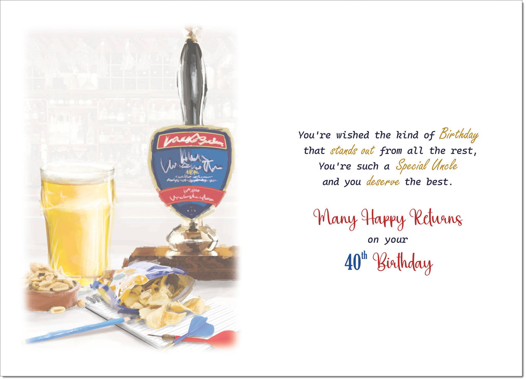 Uncle 40th Birthday Card Age 40 Draft Beer