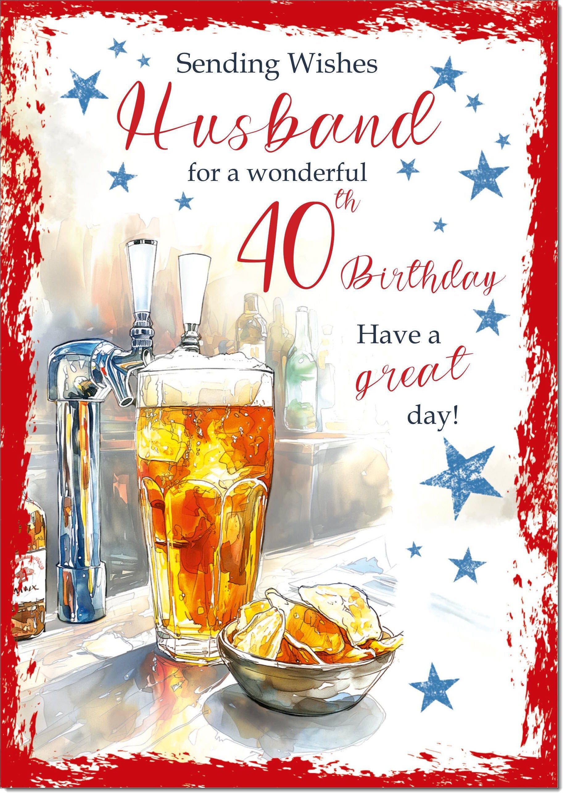 Husband 40th Birthday Card Age 40 Beer and Crisps