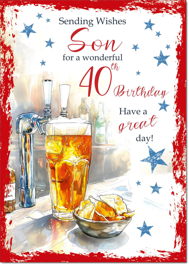 Son 40th Birthday Card Age 40 Beer and Crisps