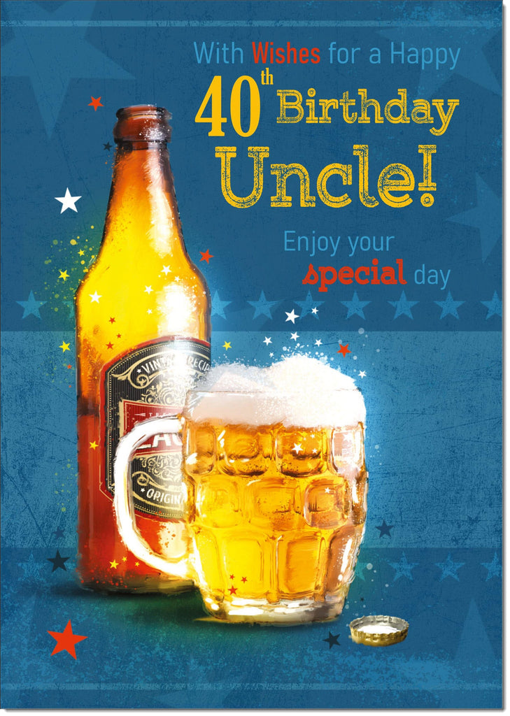 Uncle 40th Birthday Card Age 40 Beer Bottle