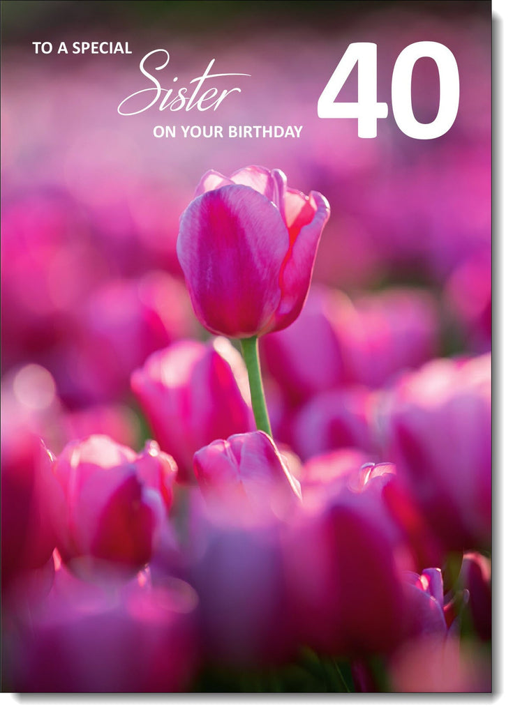Sister 40th Birthday Card Age 40 Pink Tulip Field