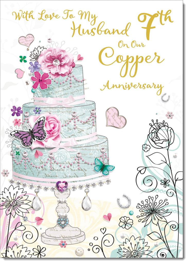 Husband Copper 7th Wedding Anniversary Card Wedding Cake