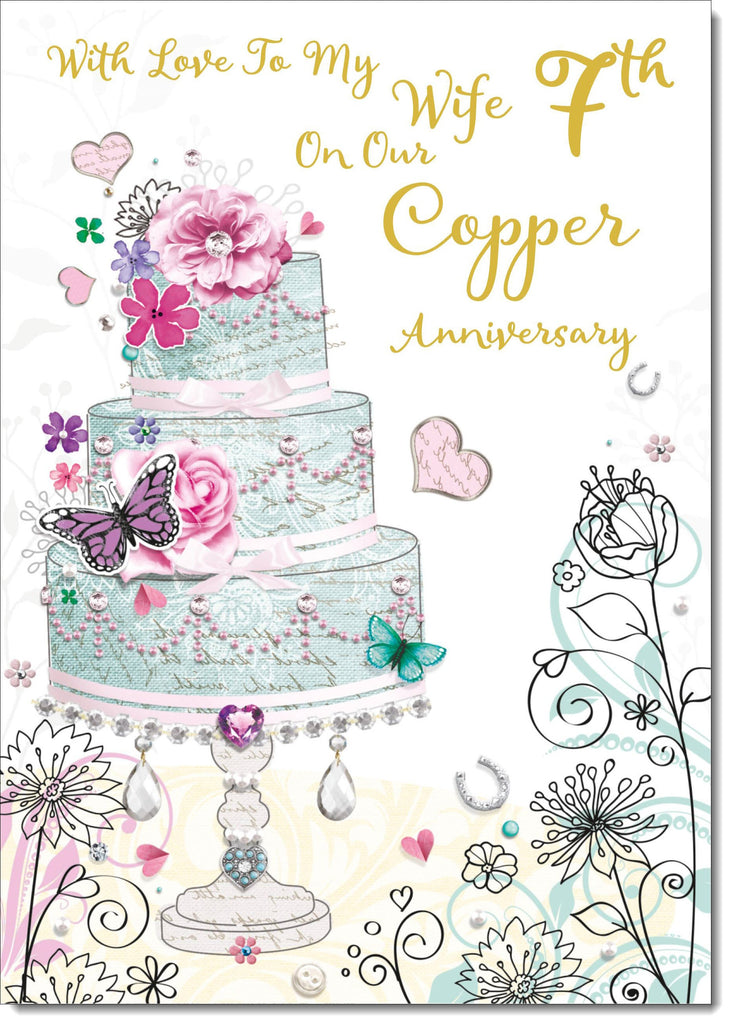 Wife Copper 7th Wedding Anniversary Card Wedding Cake