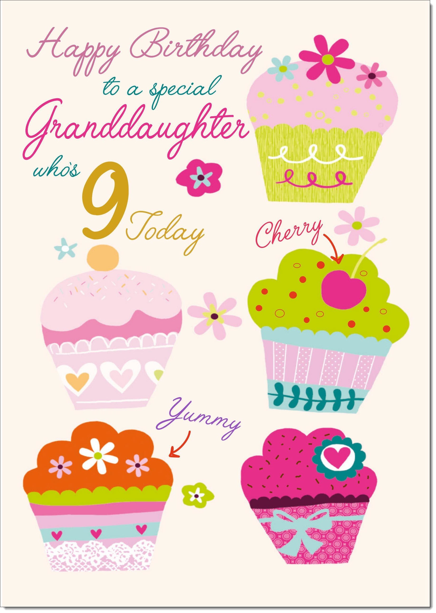 Granddaughter 9th Birthday Card Age 9 Bright Cupcakes