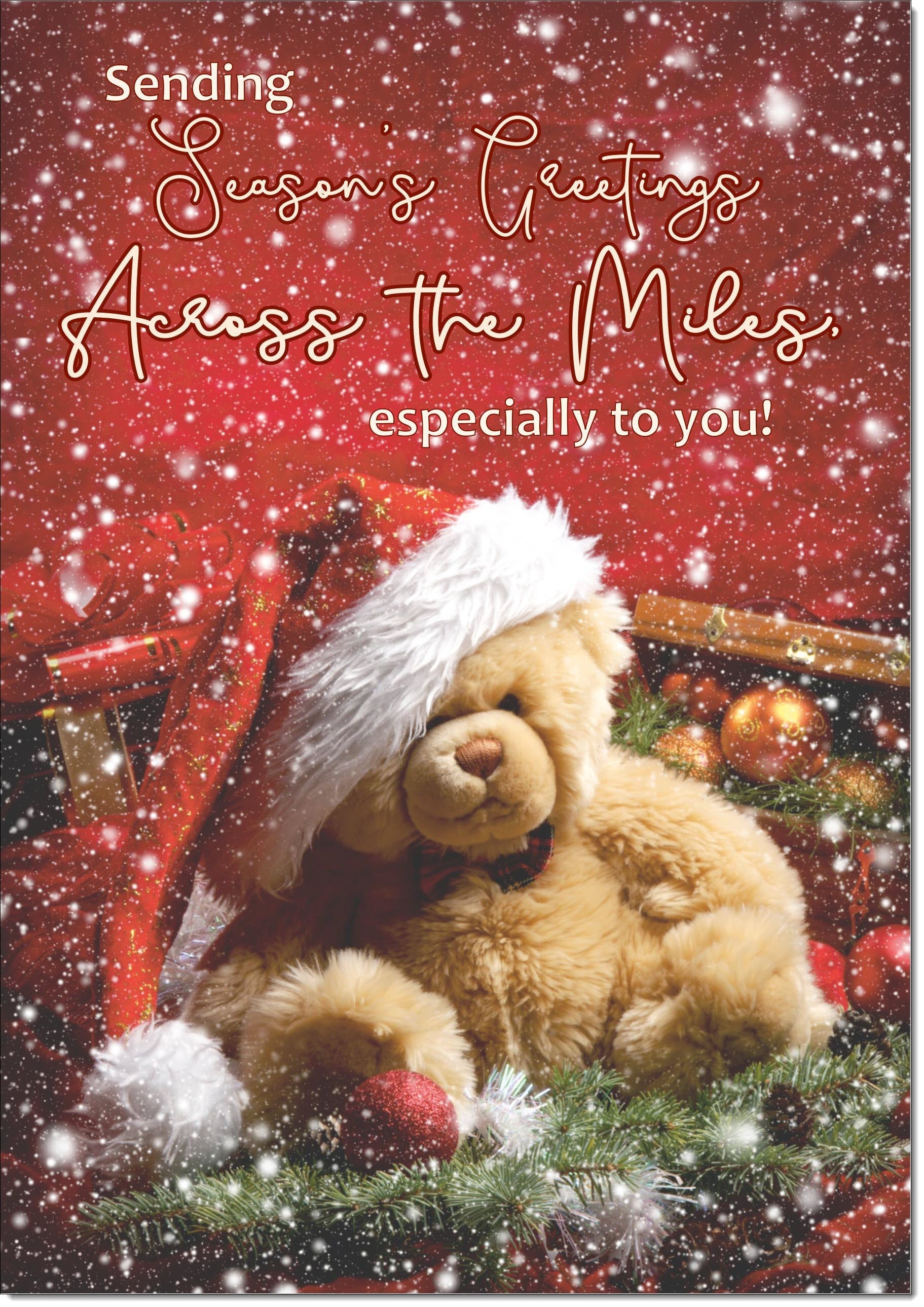 Across The Miles Christmas Card Teddy Bear in Santa Hat
