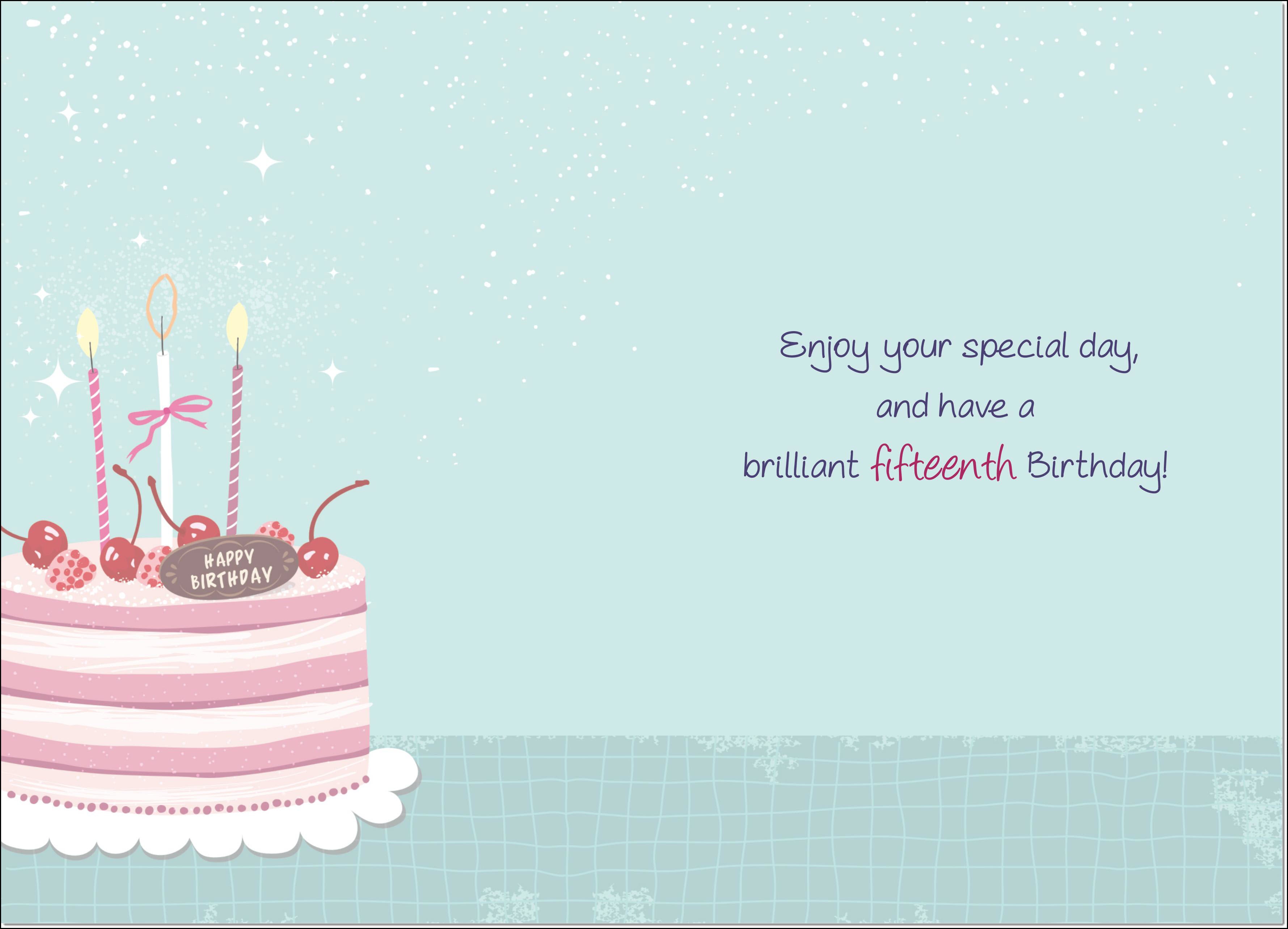 15th Birthday Card Age 15 for Girl Cherry Birthday Cake and Candles