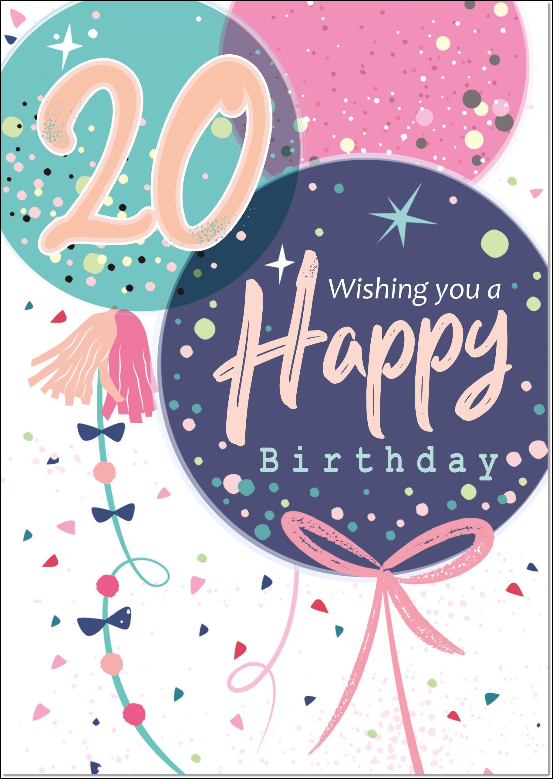 20th Birthday Card Age 20 for Her Confetti Happy Birthday Balloons