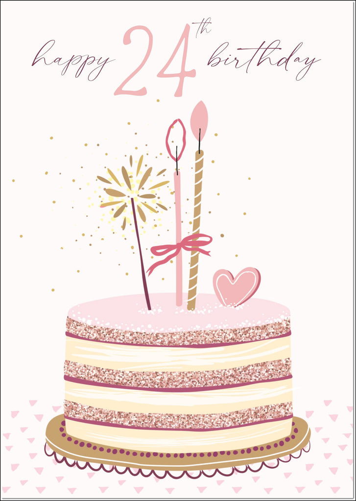 24th Birthday Card Age 24 for Her Pastel Pink Birthday Cake