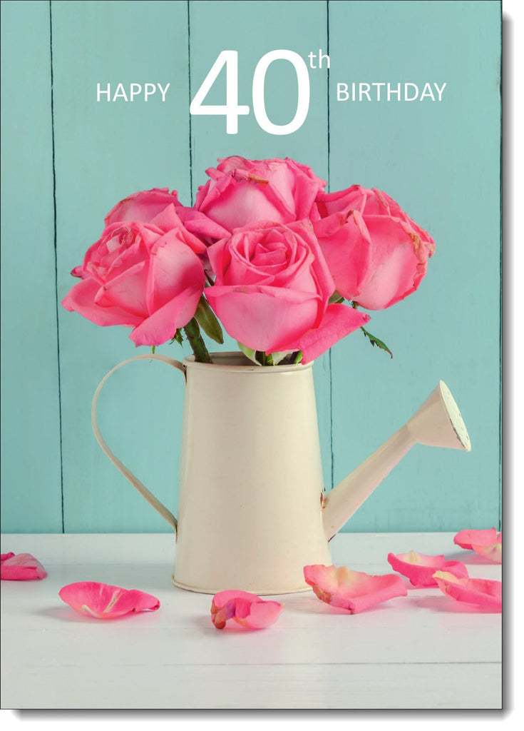 40th Birthday Card Age 40 for Her Pink Rose Bouquet