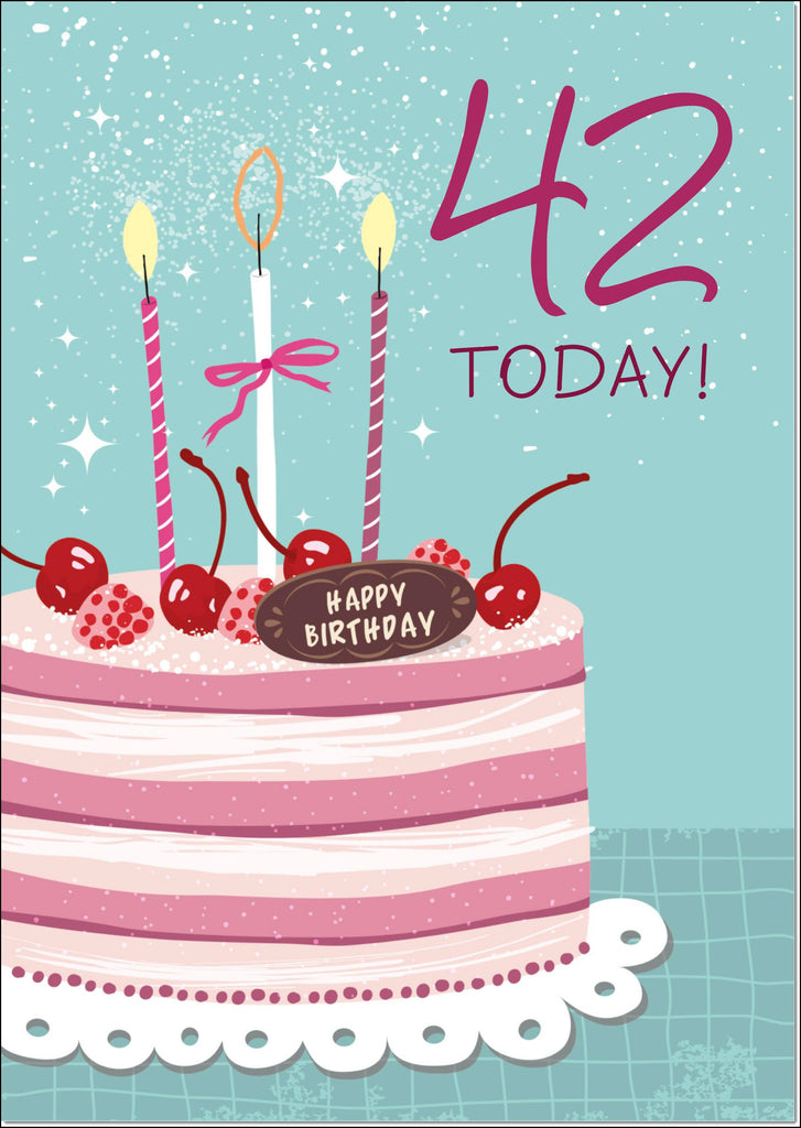 42nd Birthday Card Age 42 for Her Cherry Birthday Cake and Candles