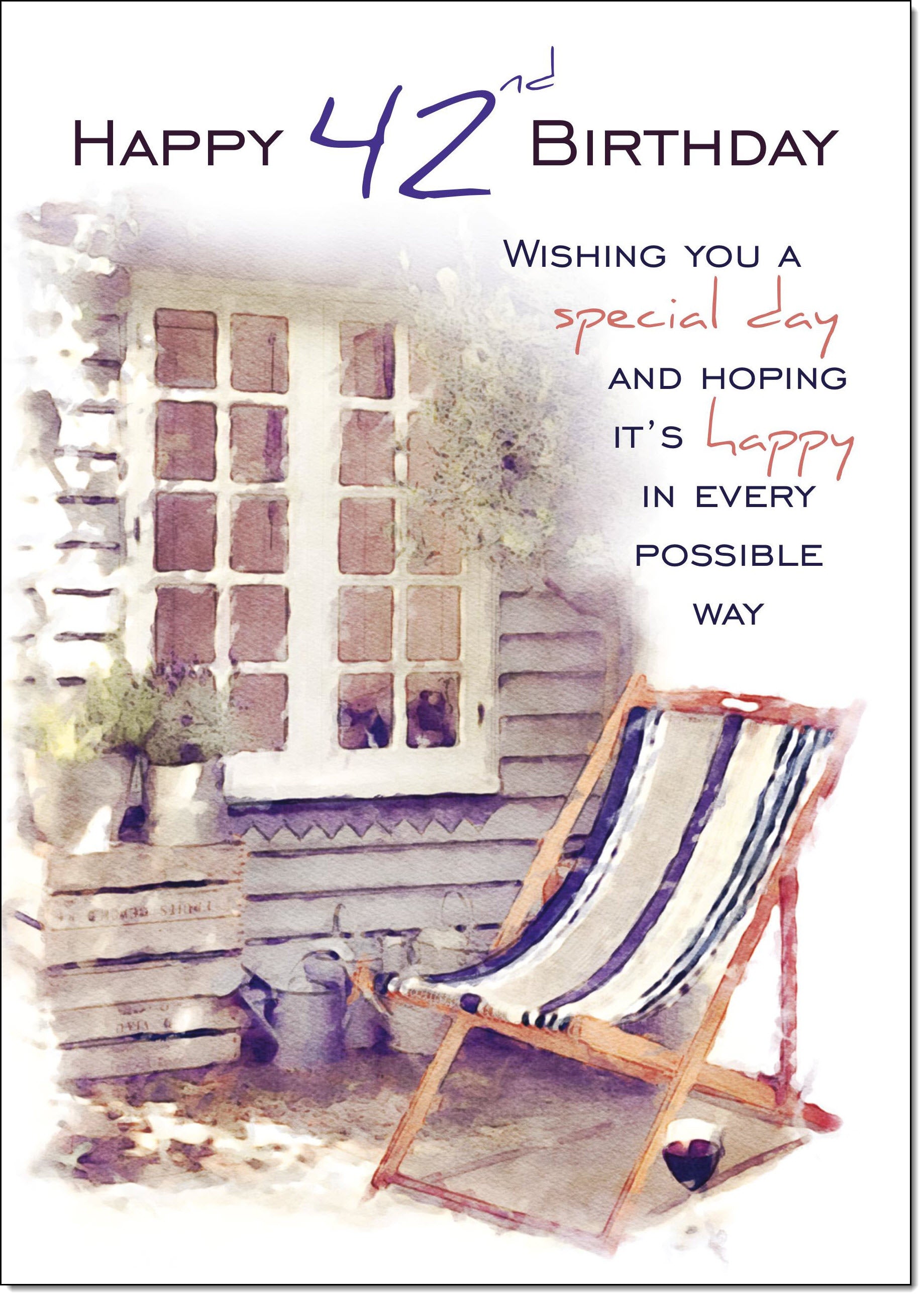 42nd Birthday Card Age 42 for Him Relaxing Deck Chair