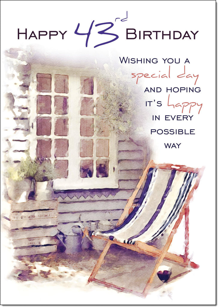 43rd Birthday Card Age 43 for Him Relaxing Deck Chair