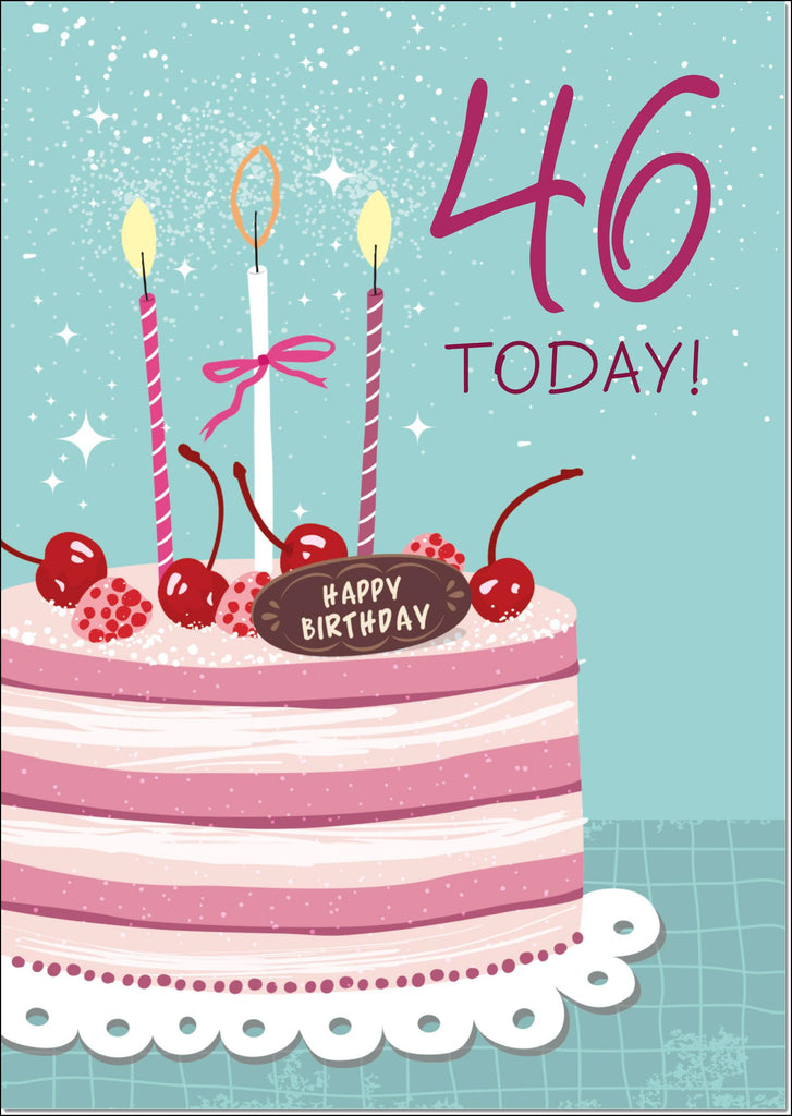 46th Birthday Card Age 46 for Her Cherry Birthday Cake and Candles