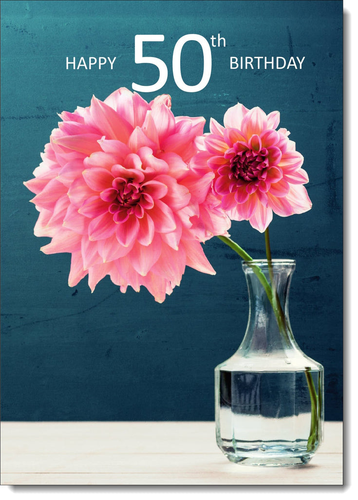 50th Birthday Card Age 50 for Her Large Pink Flowers