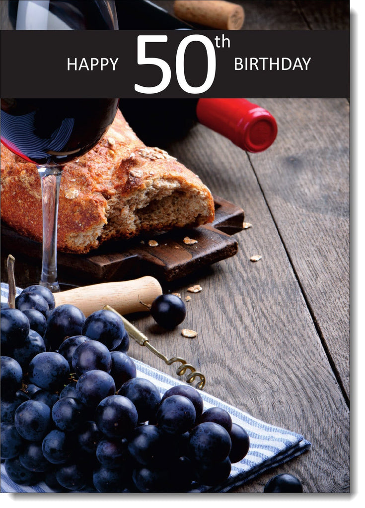 50th Birthday Card Age 50 for Him Wine and Grapes