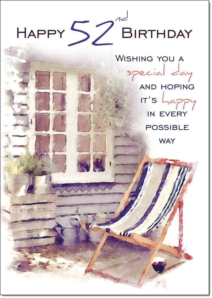 52nd Birthday Card Age 52 for Him Relaxing Deck Chair