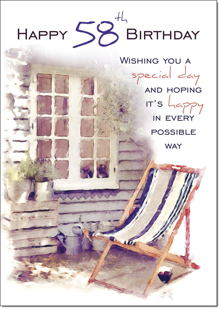 58th Birthday Card Age 58 for Him Relaxing Deck Chair