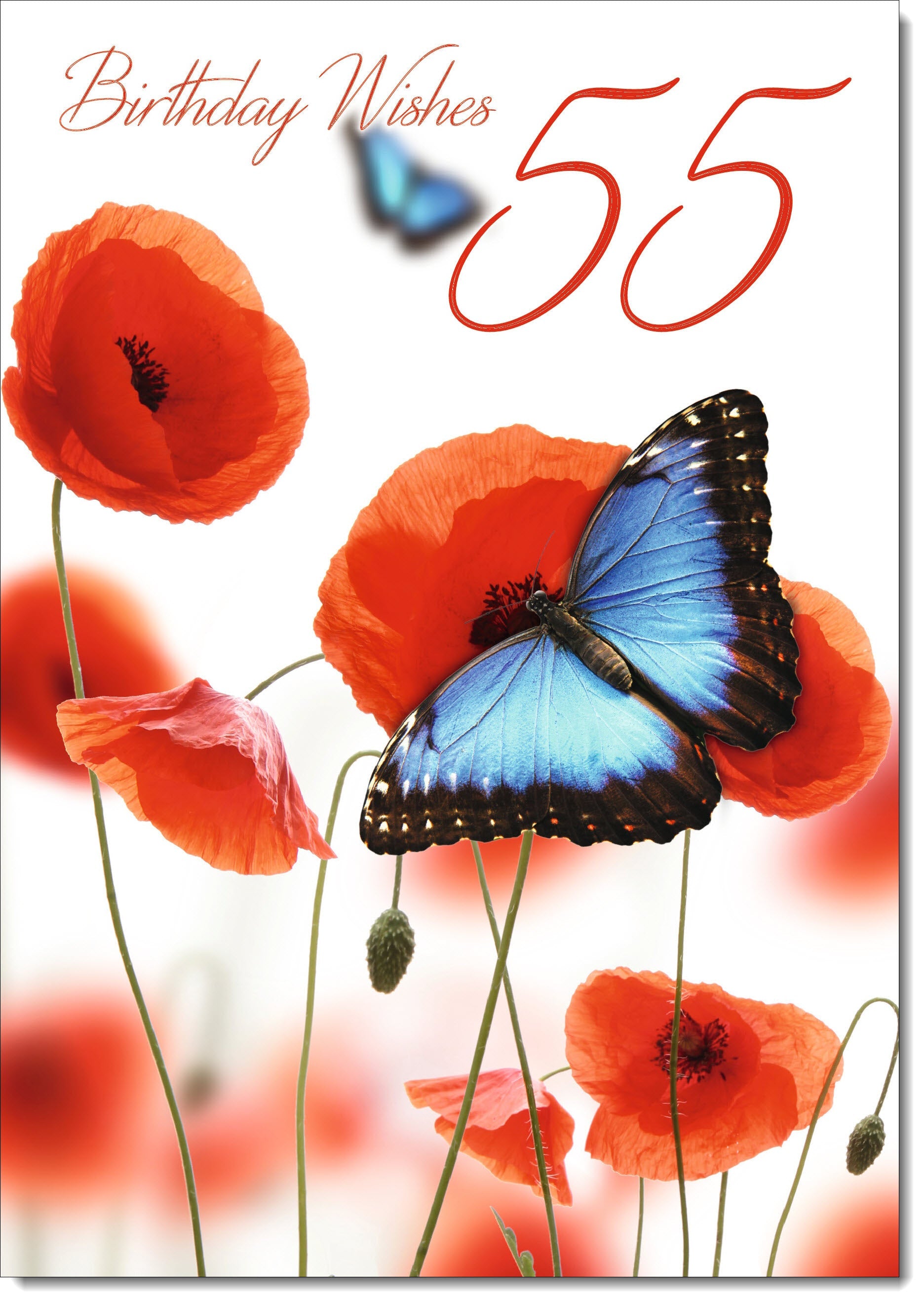 55th Birthday Card Age 55 for Her Poppies and Blue Butterflies
