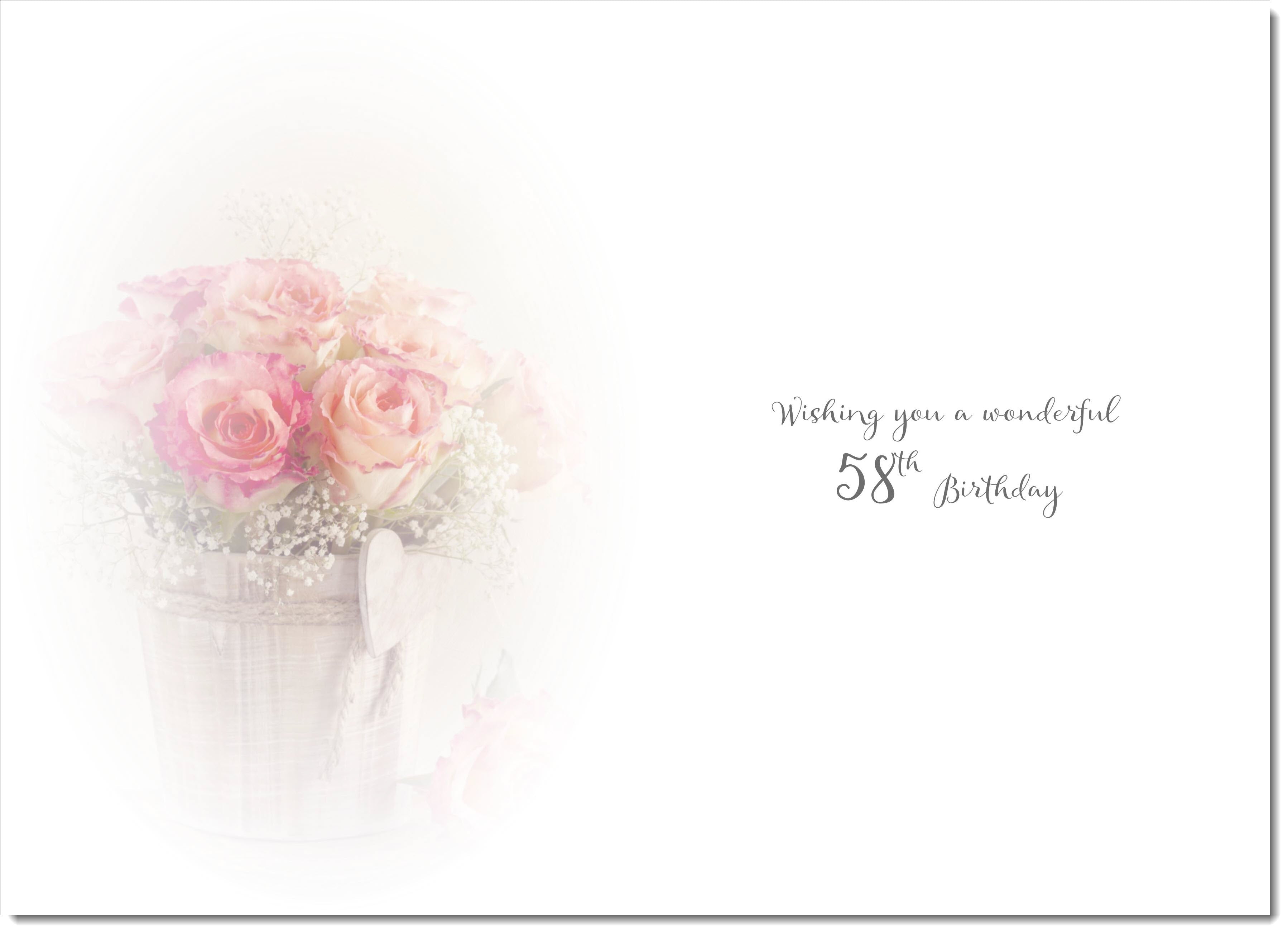58th Birthday Card Age 58 for Her Pink Rose Bouquet